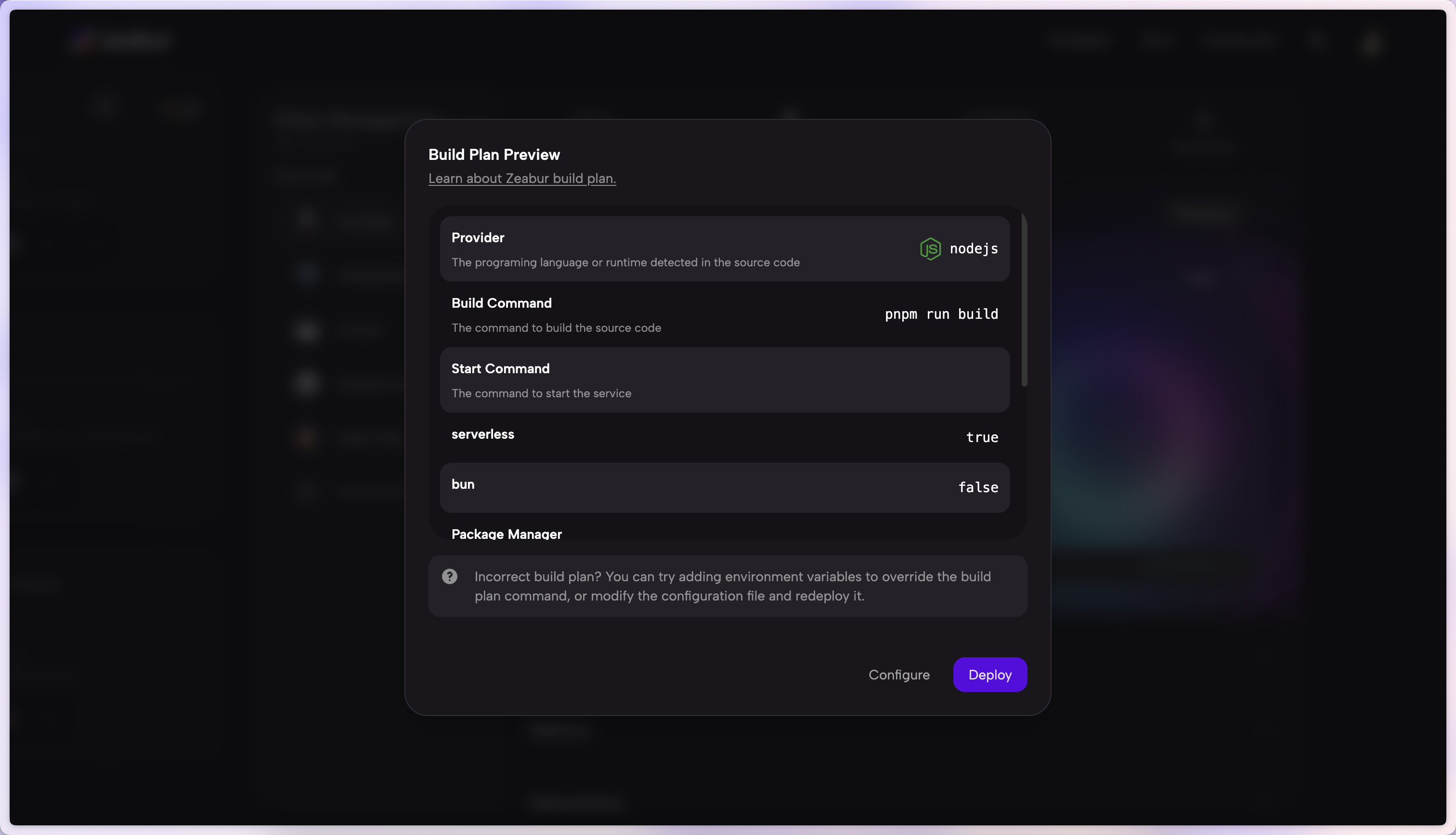 After you've uploaded the codes to Zeabur, we'll analyze the codes and determine how we are going to deploy your project.